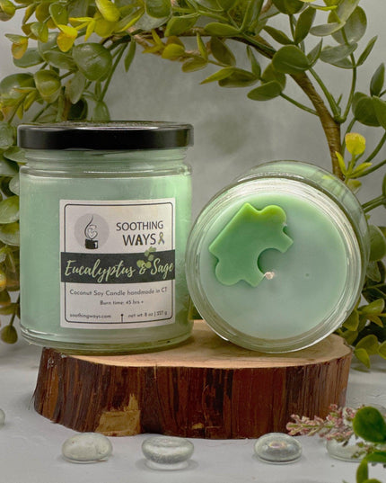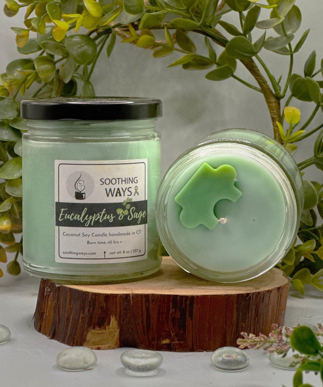 Soothe yourself and your senses with this refreshingly fragrant candle. Made with all-natural Coconut Soy Wax and scented with the oils of eucalyptus and sage, it’s designed to help breathe easier and reduce stress. 15% of all proceeds from this candle are donated to charity related to autism.