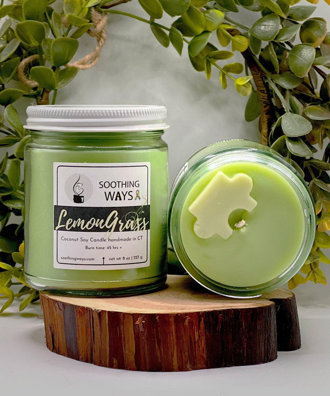Experience the scent of Lemongrass. Made with all-natural Coconut Soy Wax. Lemongrass oil has been used by healthcare providers to treat digestive problems and high blood pressure. In aromatherapy, it is to help relieve stress, anxiety, and depression. 15% of all proceeds from this candle are donated to charity related to autism.